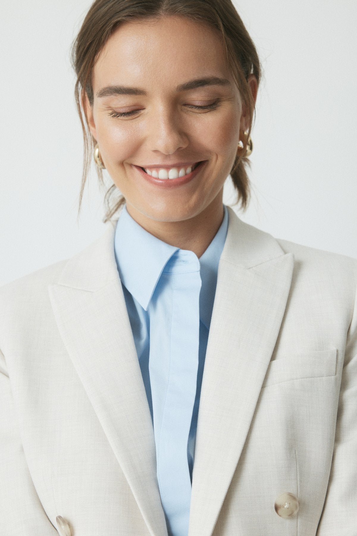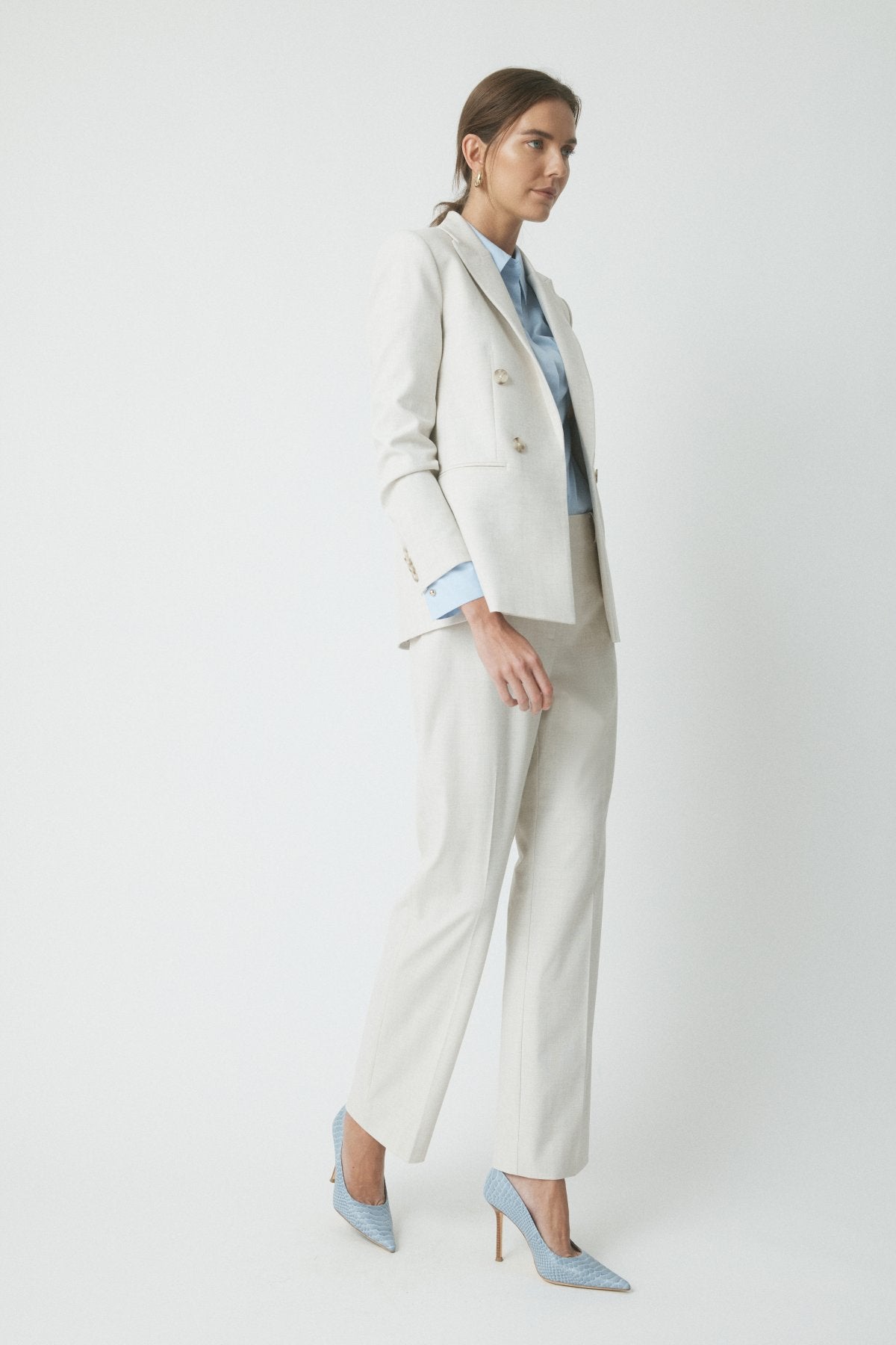 Designed to be worn open, the Alex Suit Jacket brings refined tailoring to modern suiting. Cut in a tailored fit, it features a classic notch lapel, a double breasted design, and long sleeves with cuff button detailing. Welt pockets add subtle structure to this elevated wardrobe staple. Wear with the Alex Suit Pant for a contemporary take on suiting.