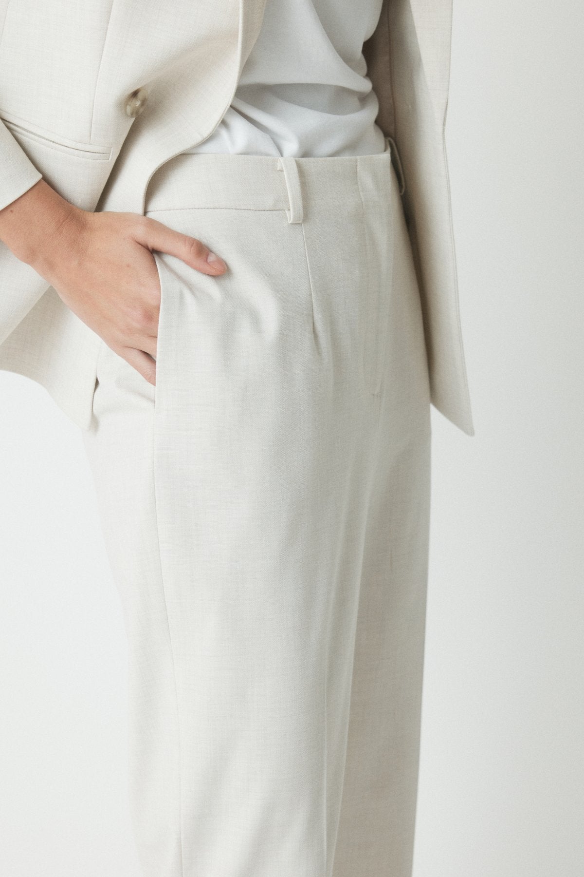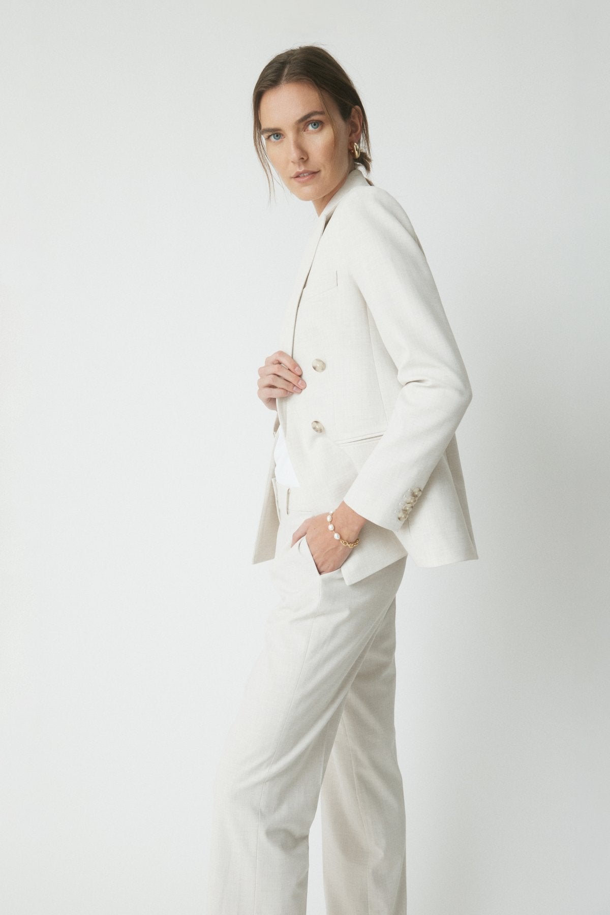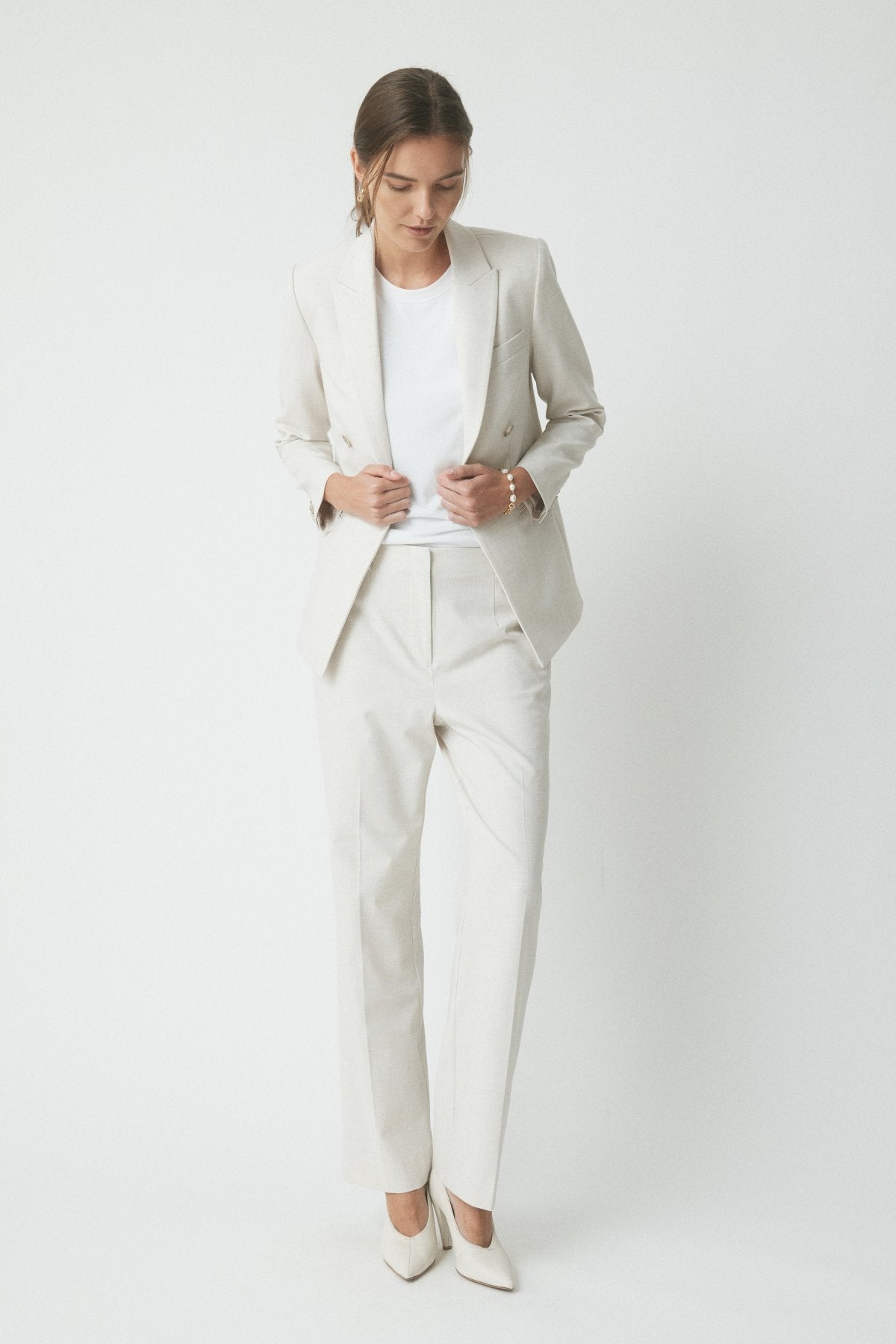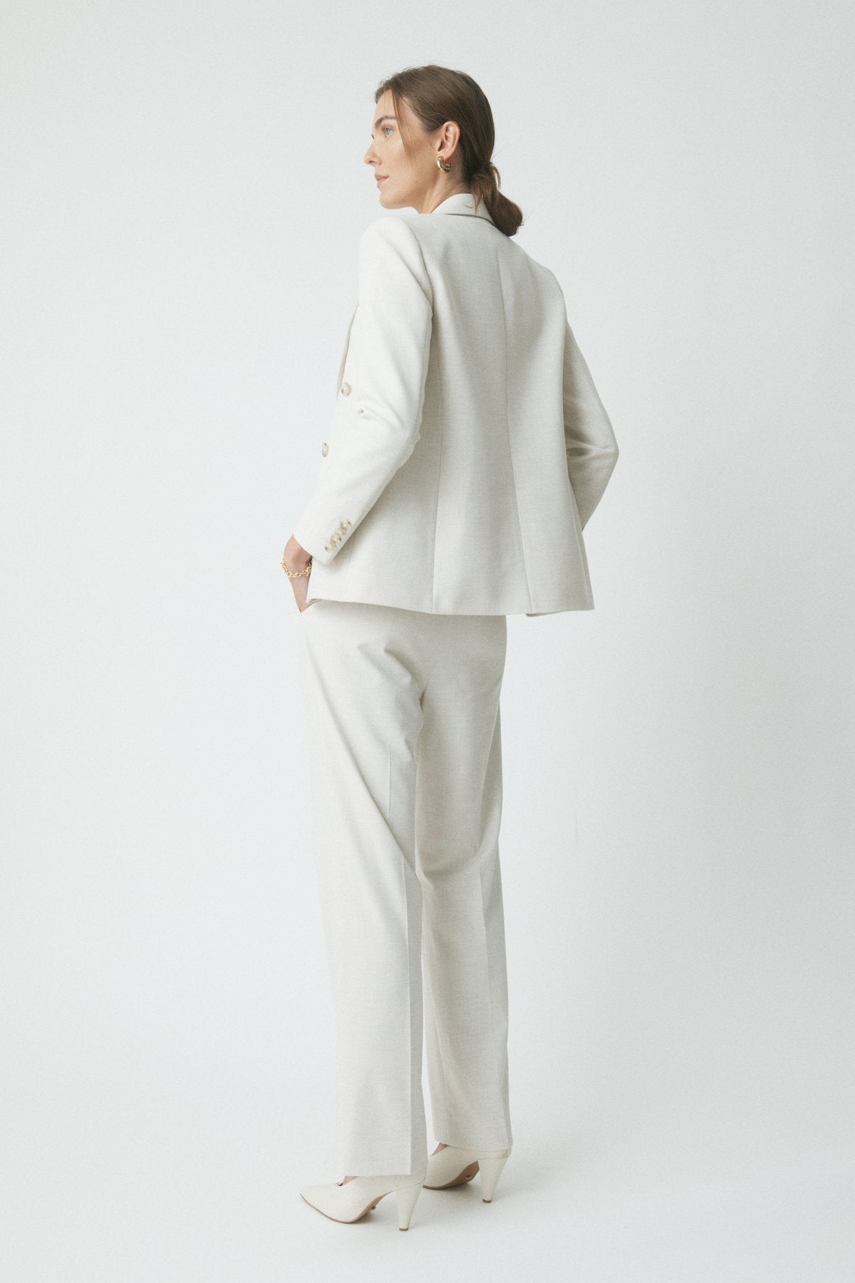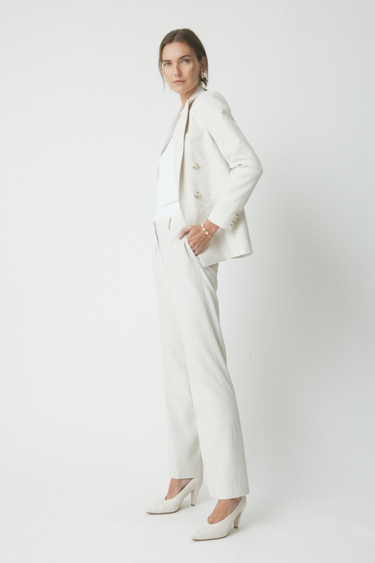 The Alex Suit Pant offers refined structure in a regular fit with a straight leg silhouette. Featuring a mid-rise waist with fly front fastening, it includes pleated detailing, inseam pockets, and an elasticated back for subtle comfort. A polished choice for tailored outfitting. Coordinate with the Alex Suit Pant for a contemporary take on suiting.