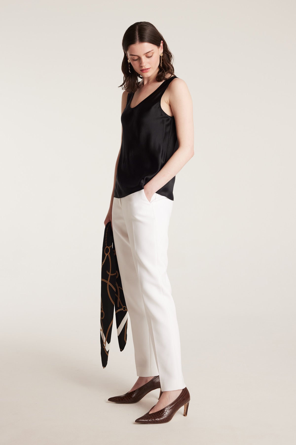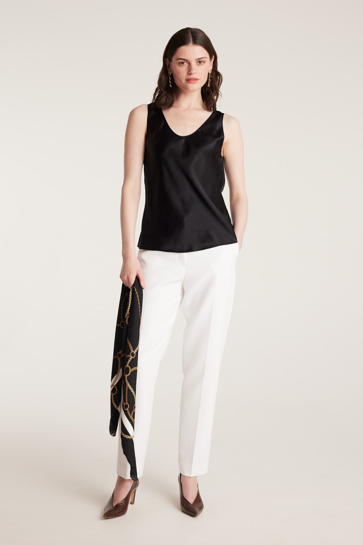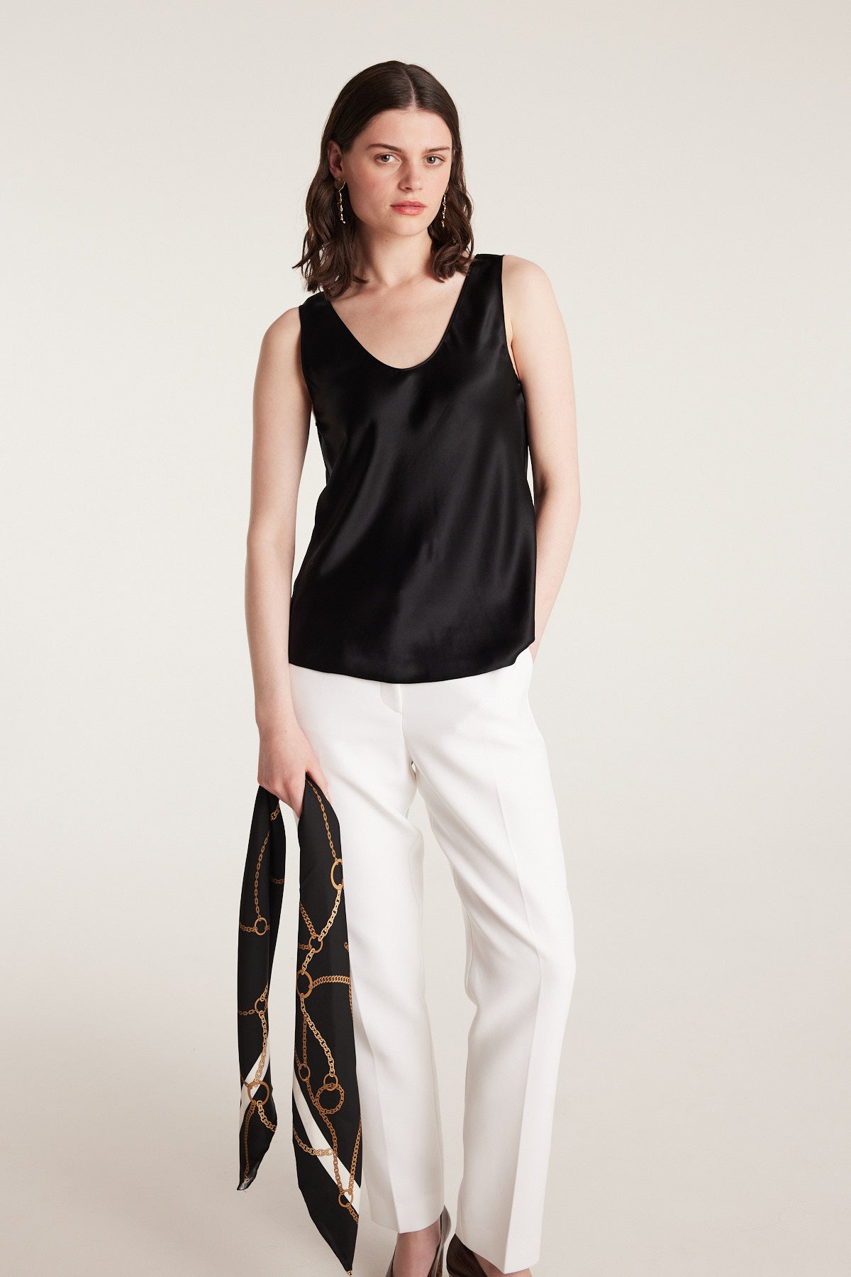 A refined layering piece, the Silk Bias Singlet is crafted from 100% silk satin for a fluid drape and soft lustre. Cut on the bias, it gently skims the body and features a simple scoop neckline for understated appeal. Perfect beneath tailoring or worn alone with relaxed separates.
