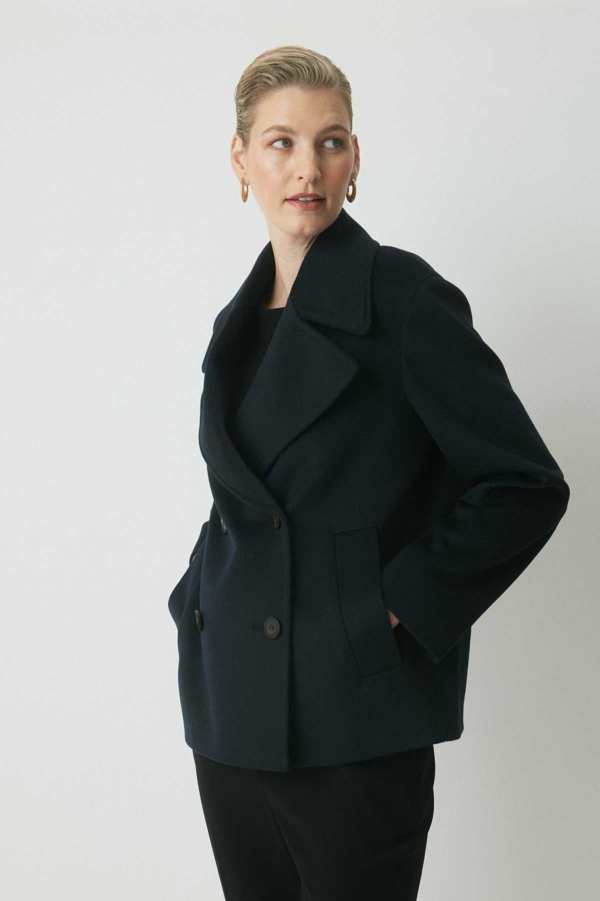 The Honore Wool Coat is crafted from premium pure wool, offering a modern approach to classic outerwear. Designed in a relaxed silhouette with an exaggerated lapel and dropped shoulders, this double-breasted style falls to a medium body length for a contemporary finish.